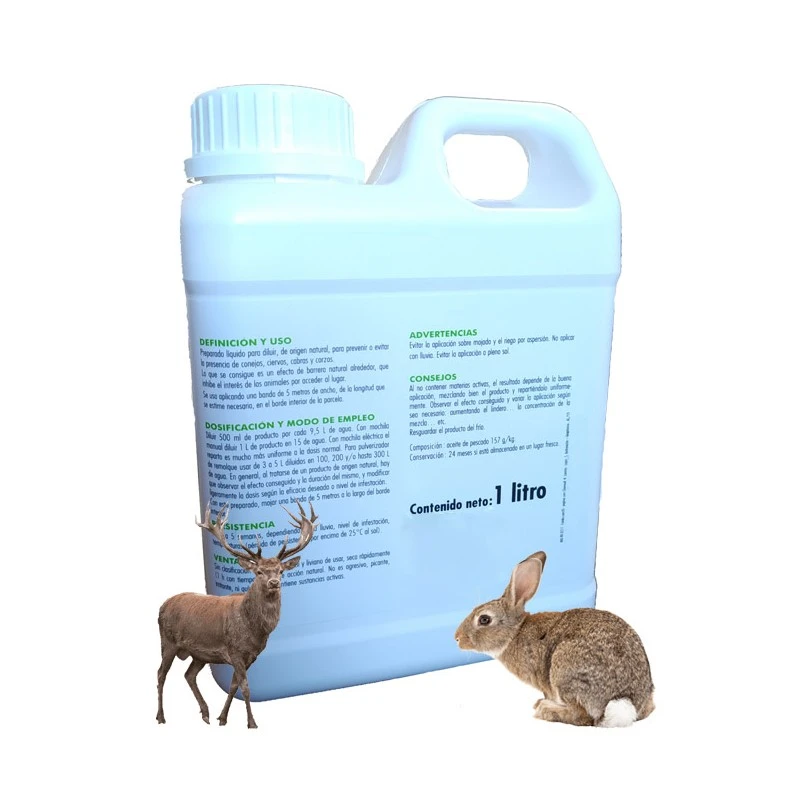 Barrera protectora de árboles y plantas contra conejos y cérvidos en formato de 1 litro para diluir y 100% natural contra conejos, liebres, ciervos, cabras y corzos. Eficaz en arboles frutales, ornamentales, viña, cereales, plantas forestales, troncos, plantas jóvenes, hortalizas y verduras.