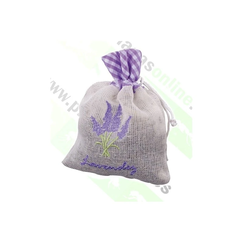 Bolsita de lino conteniendo flores de lavanda, ideal para perfumar nuestros armarios, cajones, coche.