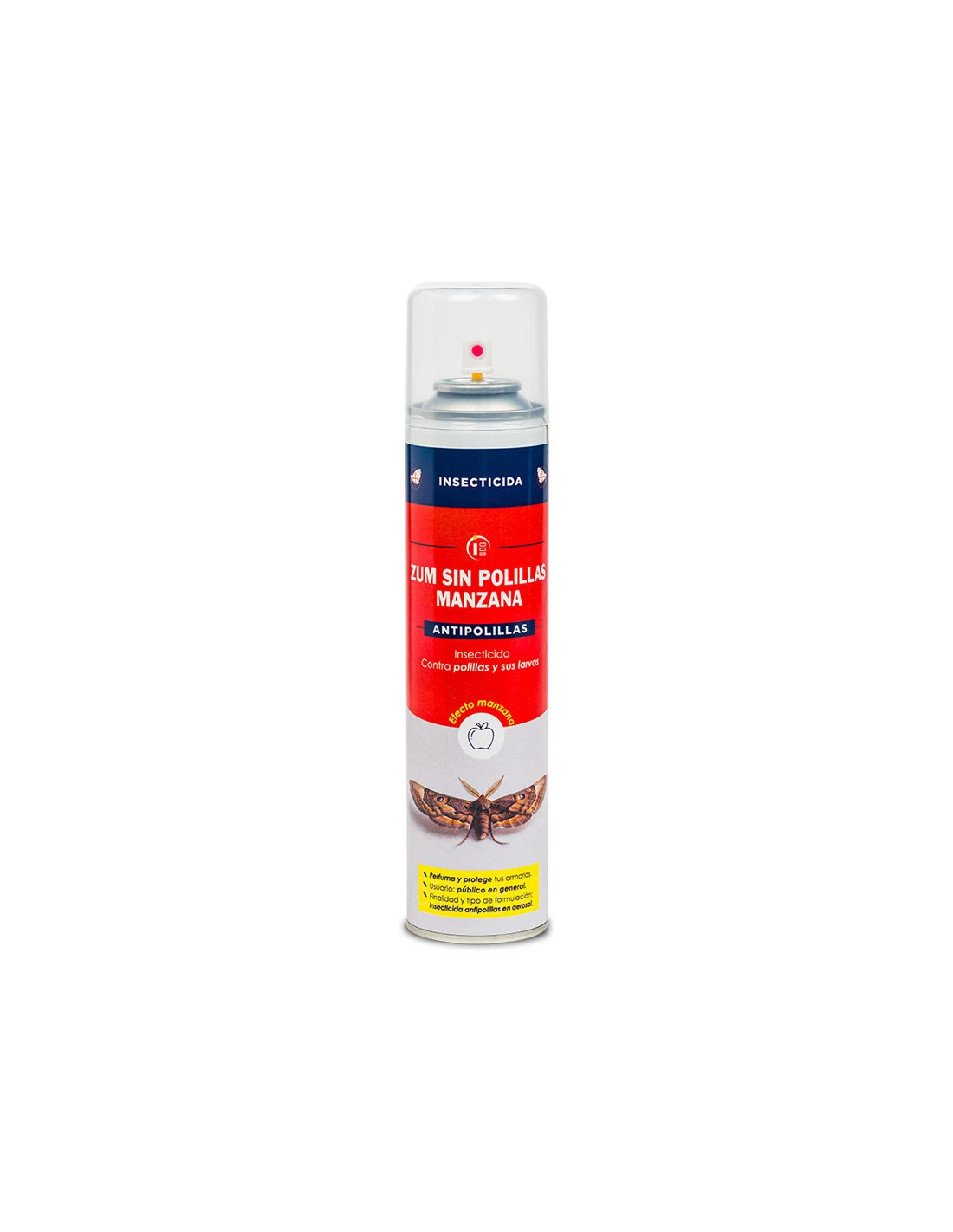 Insecticida que protege y perfuma (olor manzana) los armarios contra polillas y sus larvas. Su efecto manzana previene y mantiene alejadas las polillas, permitiendo además un agradable perfume en los armarios y zonas tratadas.