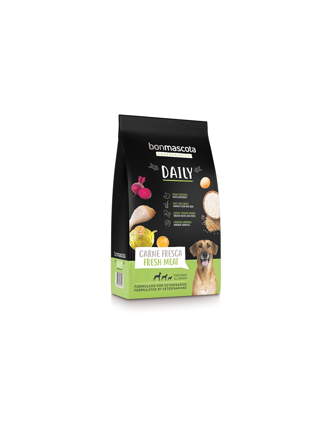 MODO DE EMPLEO: Administrar bonmascota en un comedero siguiendo las recomendaciones de las tablas adjuntas y dejando siempre agua limpia y fresca a disposición del animal. Administrar la ración recomendada en una o dos veces. Guardar en lugar fresco, seco y resguardado de la luz solar directa.
