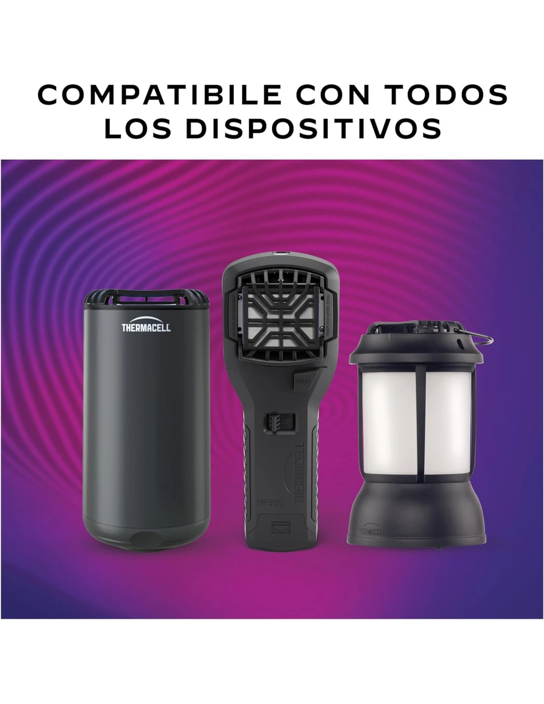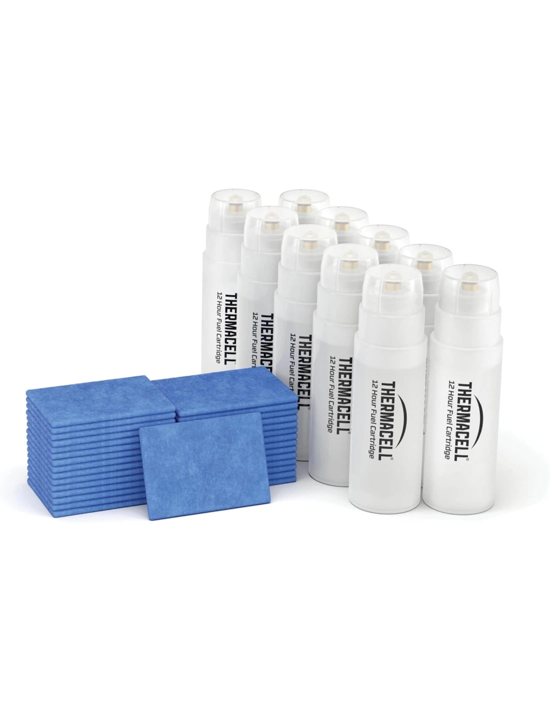El paquete incluye 10 cartuchos de gas butano x 12 horas (120 horas) y 30 pastillas inodoras, compatibles con todos los dispositivos Thermacell.